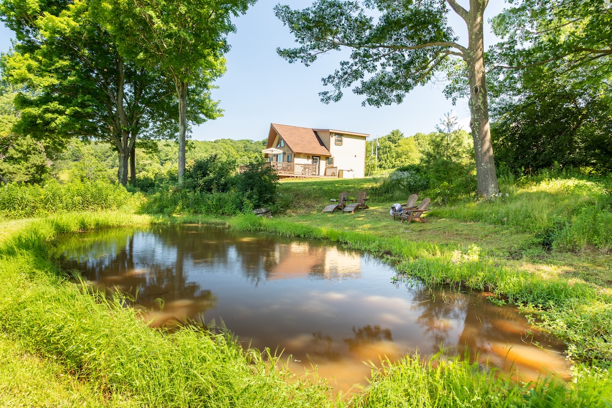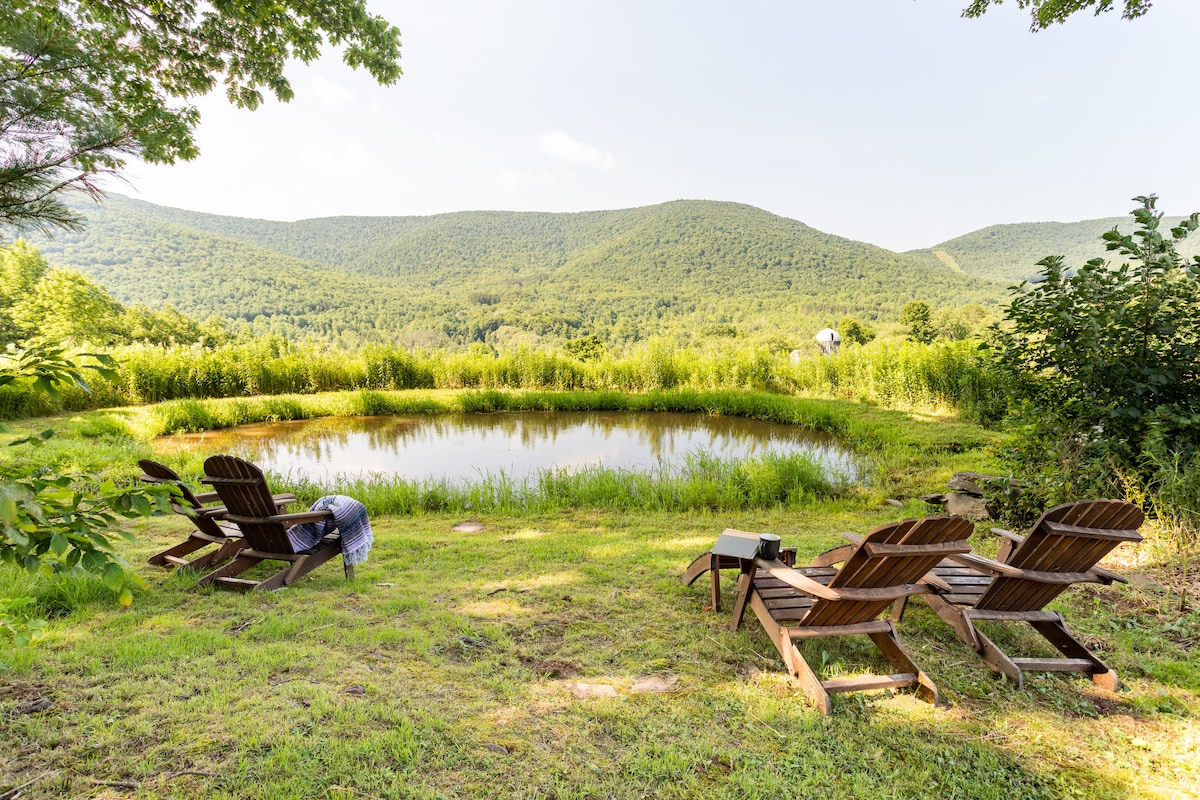 HobartWhether you're looking to create new memories with friends and family, trying to decompress and relax outside of the city, or planning a romantic escape for that special someone in your life, this mountain view cabin is the perfect choice for your adventures in the Catskills region. Awaken before daybreak to watch the sunrise over the mountains & unwind by the pond with a delicious cup of coffee provided at the cabin.